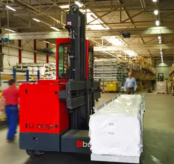 A többirányú oldalvillás targoncával a hosszú áruk kényelmesen és biztonságosan szállíthatók oldalirányban, így a kezelőnek teljes rálátása nyílik az esetleges akadályokra.