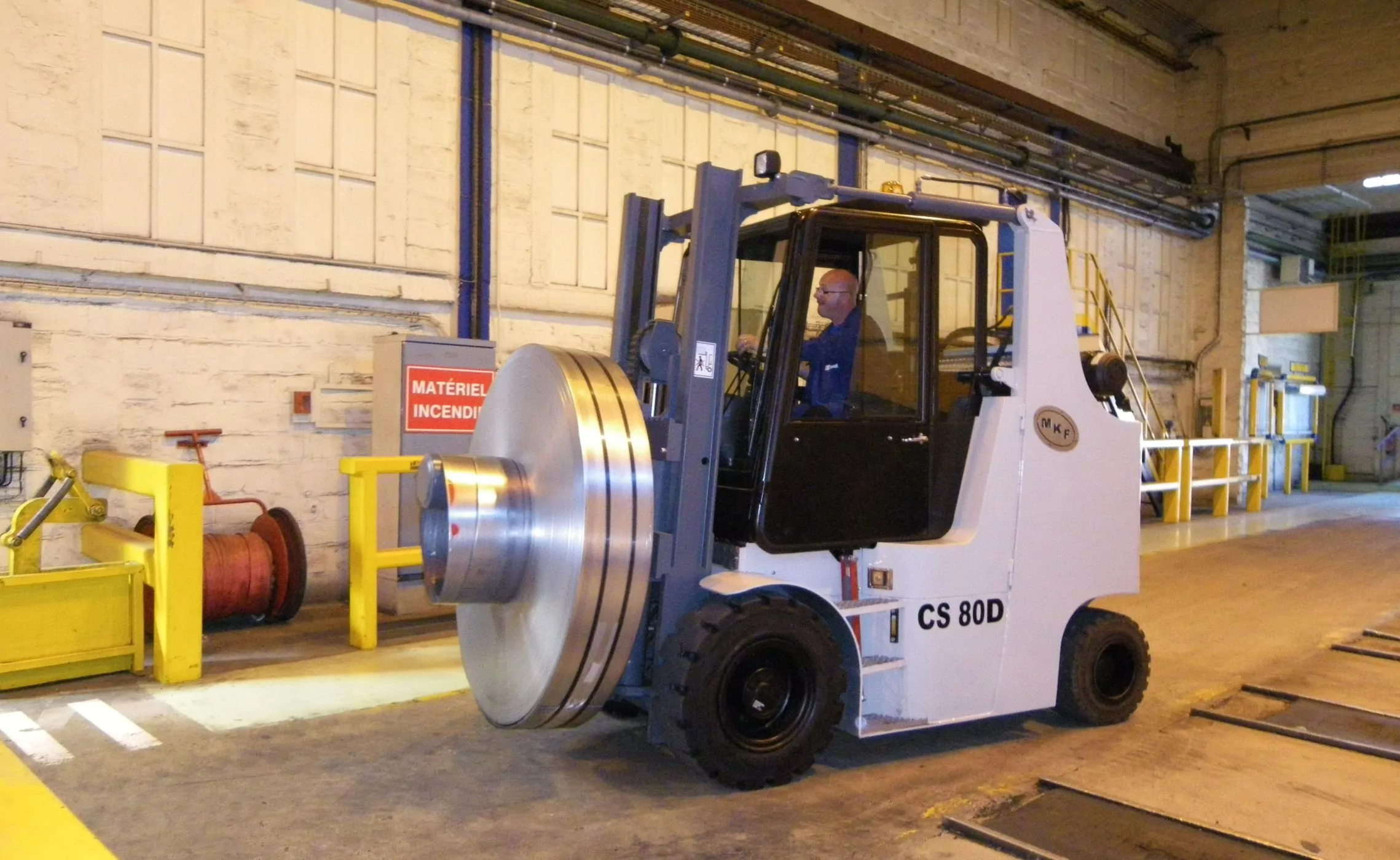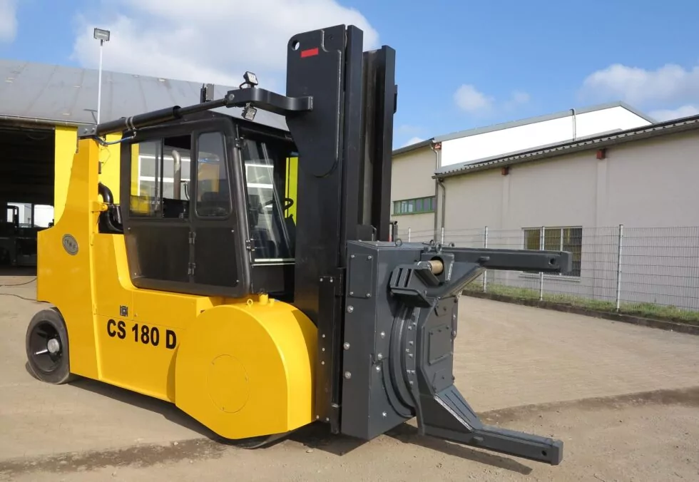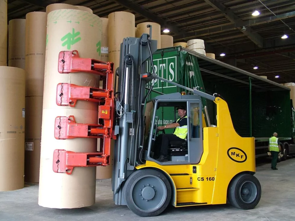 Kompakt targonca elforgatható papírtekercs-megfogóval. Emelési magasság 10 méterig.
